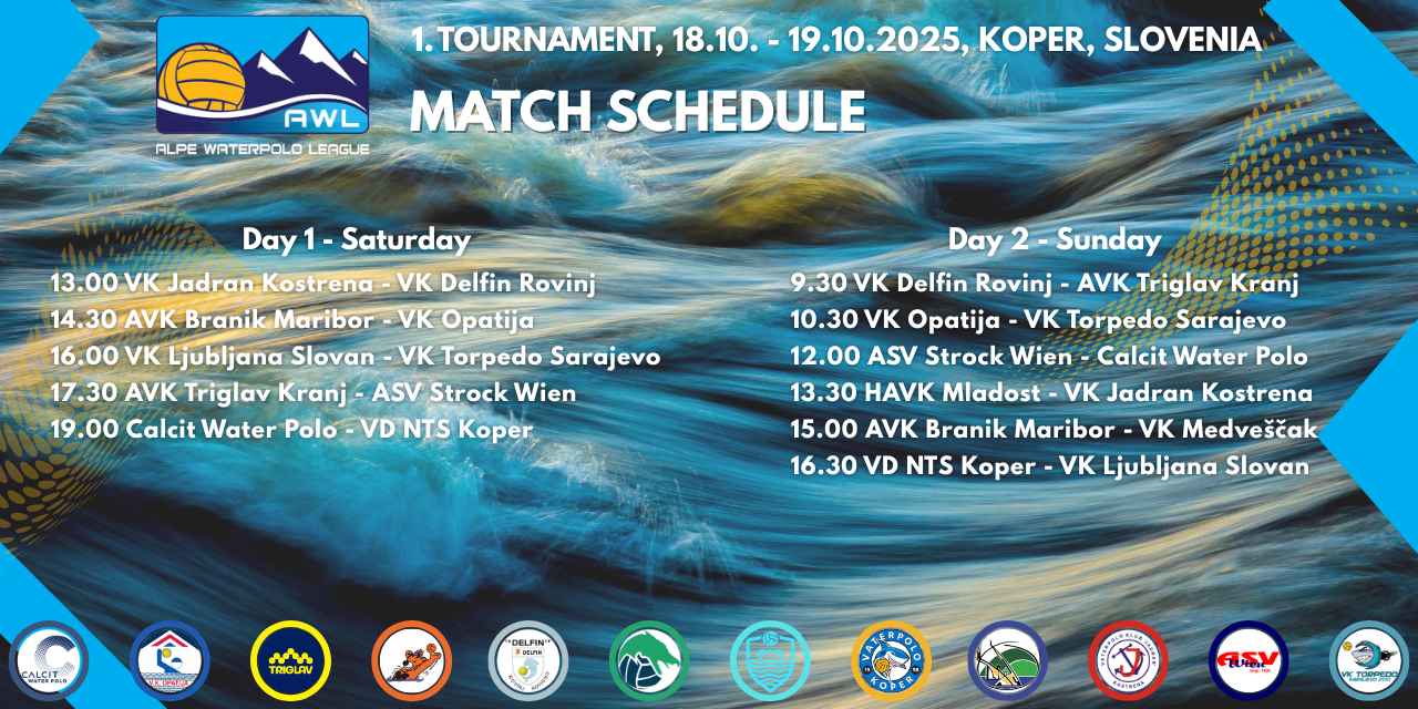 Vaterpolo klub Ljubljana Slovan bo v prihajajočem koncu tedna nastopil na prvem turnirju nove sezone Alpe Waterpolo League (AWL), ki bo potekal 18. in 19. oktobra v Kopru. Turnir bo gostil VD NTS Koper – Hanna Instruments, tekmovanja pa se bodo udeležile ekipe iz Slovenije, Hrvaške, Avstrije in Bosne in Hercegovine.